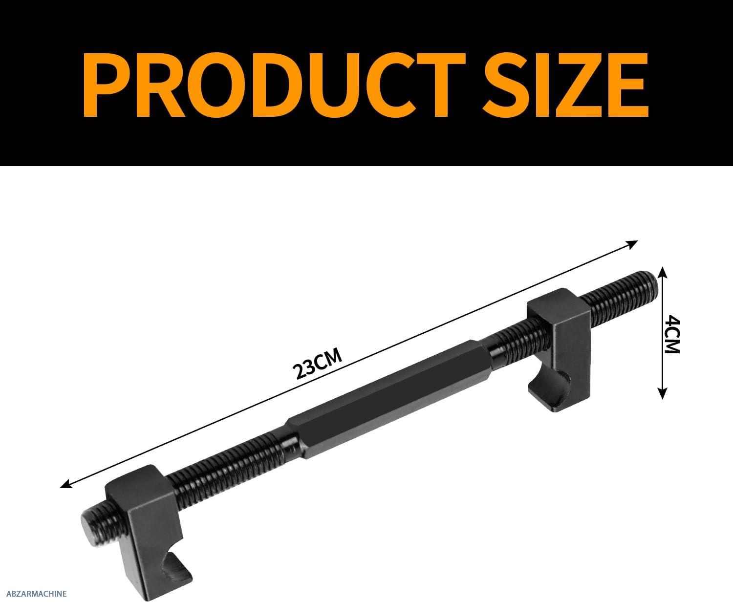 چگونه فنر جمع کن موتور سیکلت داناپلاس مدل D113225 را استفاده کنم؟ قلابها را به فنر متصل کنید، میله را بچرخانید تا فنر فشرده شود، سپس عملیات تعمیر را انجام دهید.